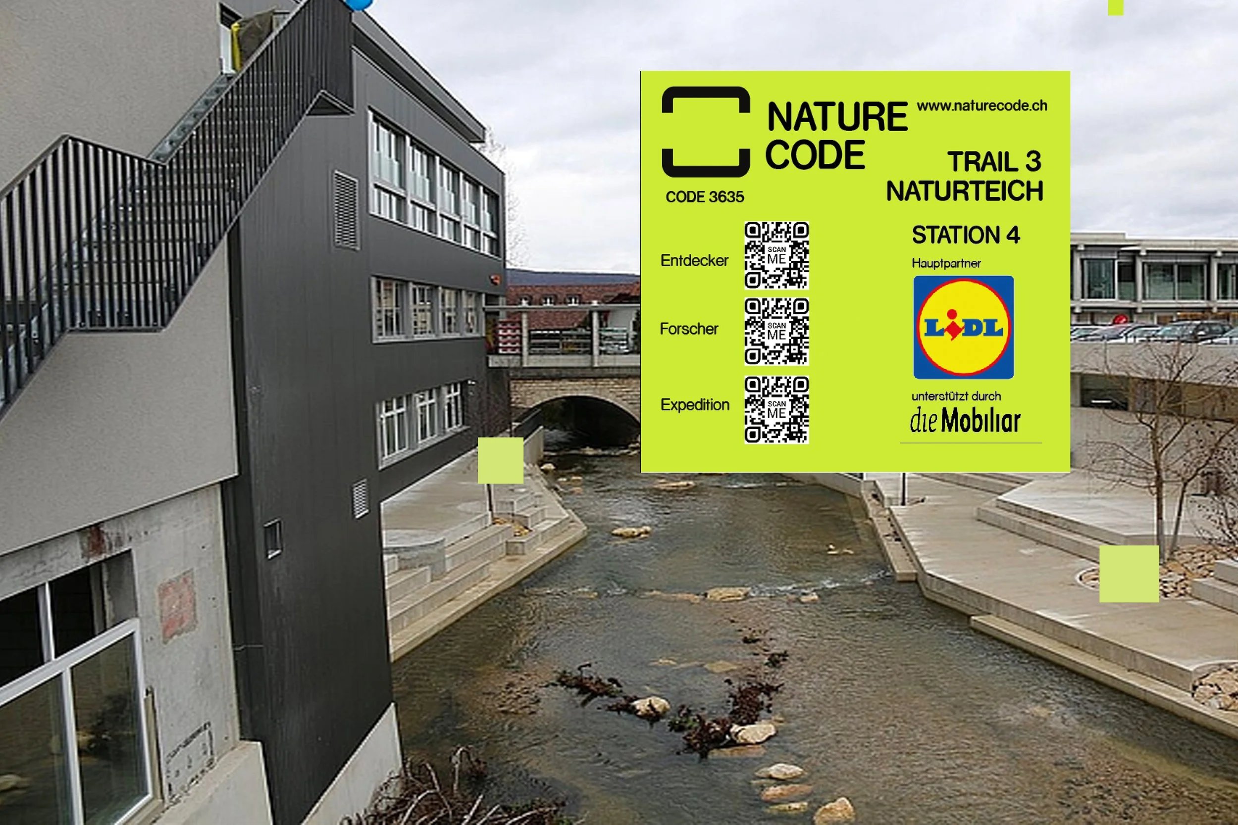Über QR-Tafeln öffnet sich ein spielerisches Quiz mit Fragen zu Biodiversität, Klima und Stadtnatur – eine unterhaltsame Challenge, die zum Entdecken einlädt.